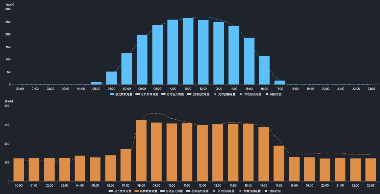 通過開展基于時間卷積神經網絡(TCN)結合長度記憶時間網絡(LSTM)的光伏發電出力和負載曲線預測方法等研究,實現提前預測光伏的發電量和負載曲線,從而根據儲能的配儲容量,結合不同時段的電價來自動動態制定系統充放電策略,保證經濟效益的最大化。光伏預測平均準確率≥80%,負載預測平均準確率≥90%,光伏預測最小周期24小時。