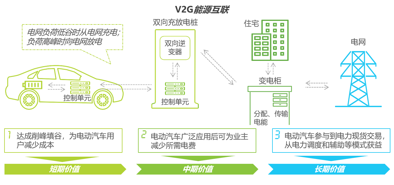 V2G模式試點正在進行:V2G可達成車輛與電網之間的能源互聯,實現儲能調峰、改善電能質量、調整用電負荷等服務,將成為未來的長期發展方向。