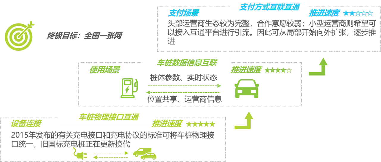 互聯互通成為行業共識:由于利益分配問題支付互通短期內阻礙較大,行業實現電動汽車、充電樁、運營商三方之間的互聯互通,可有效解決這一難題,通過信息數據的分析充分提高單樁充電設施的利用效率。