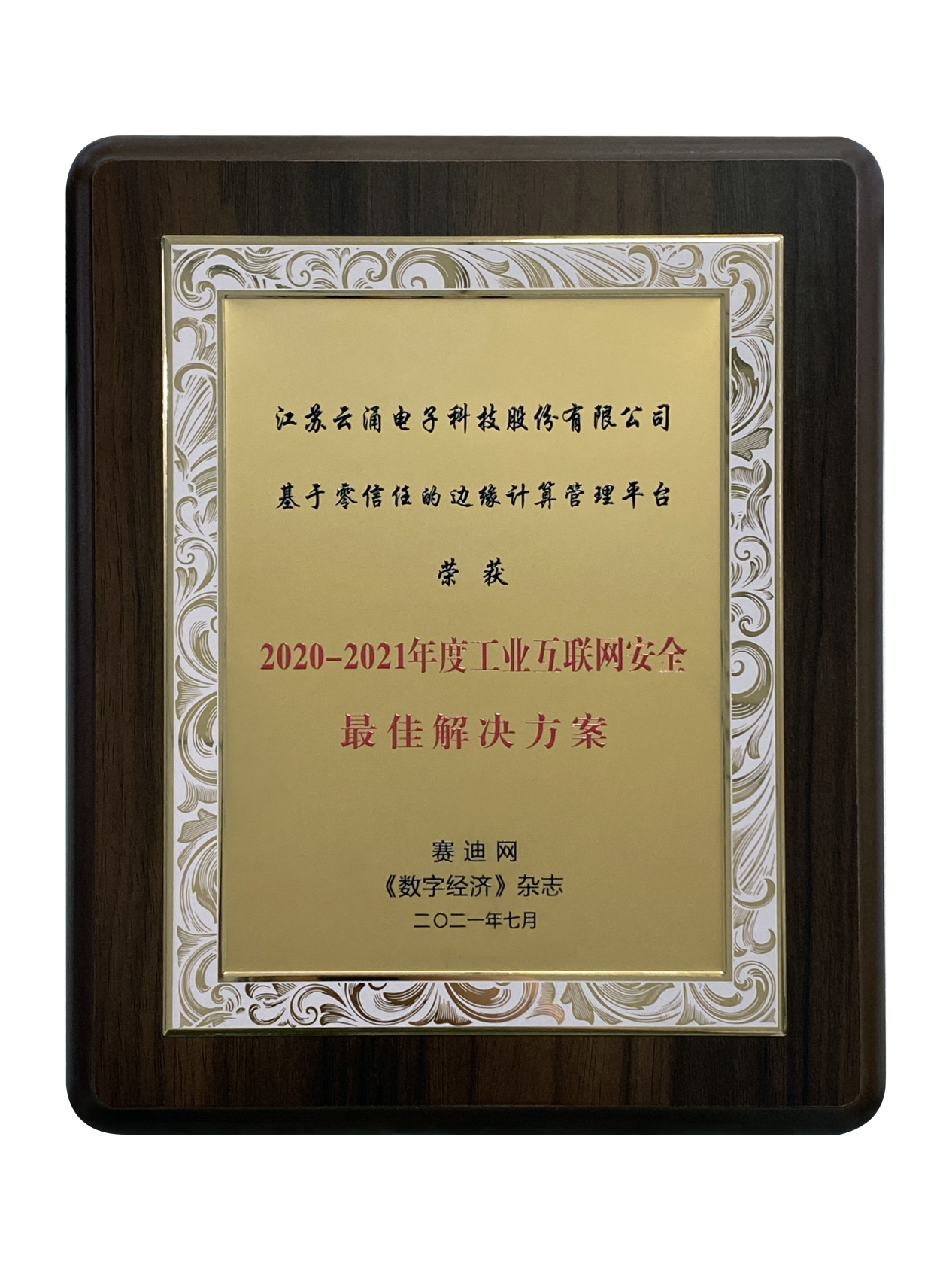 云涌科技基于零信任的邊緣計算管理平臺榮獲“2020-2021年度工業(yè)互聯(lián)網(wǎng)安全解決方案”的稱譽。