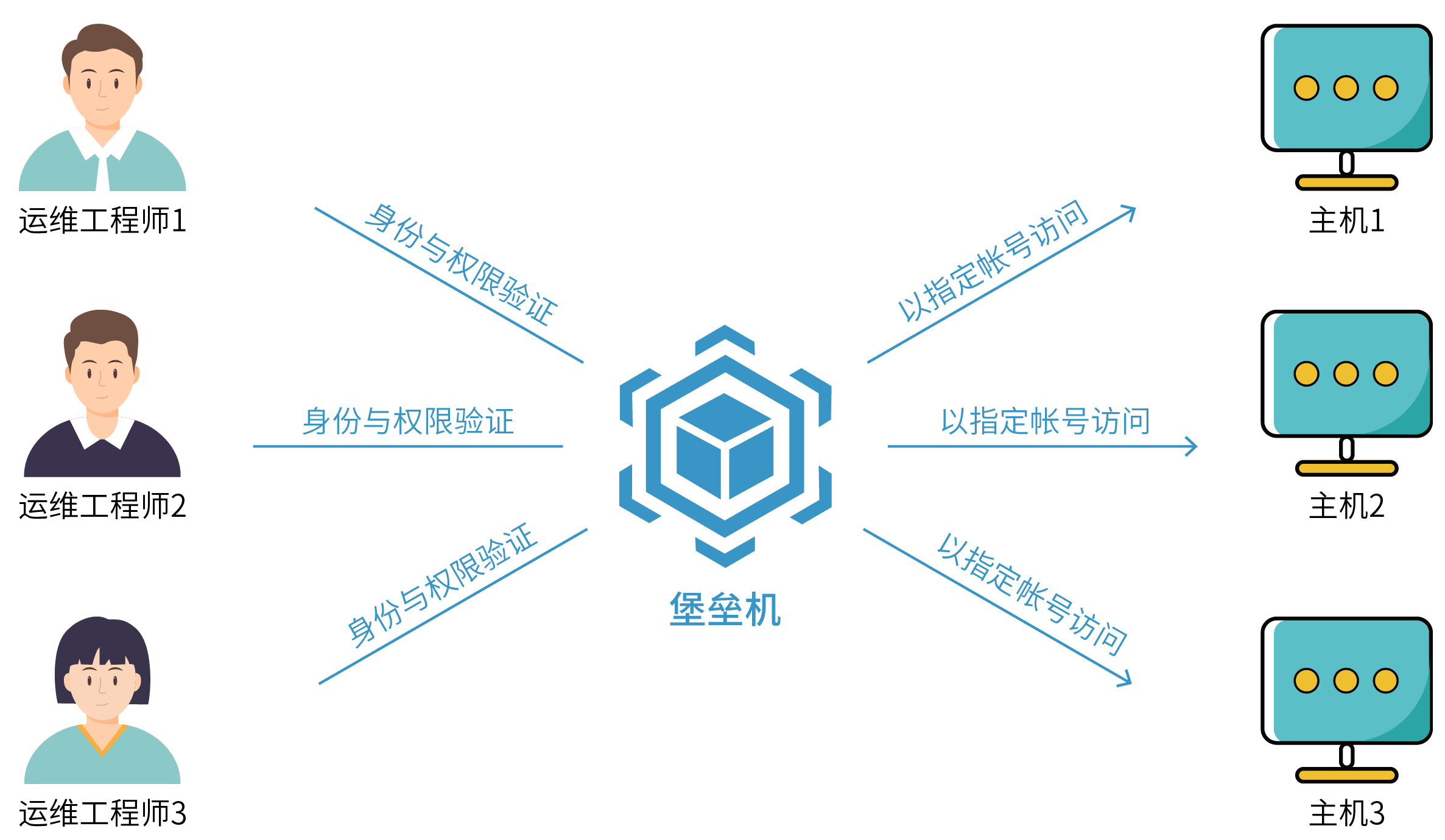 一方面堡壘機可通過遠程運維,隱藏資產的真實地址,解決資產信息暴露問題,另一方面通過提供多賬號統(tǒng)一運維收口和權限細粒度劃分管理,實現便捷運維和靈活規(guī)范化管理,最后通過提供全面的運維日志,對整個運維過程,包括人員操作行為提供有效監(jiān)控,得以保證互聯網企業(yè)在不斷發(fā)展過程中的持續(xù)穩(wěn)定。