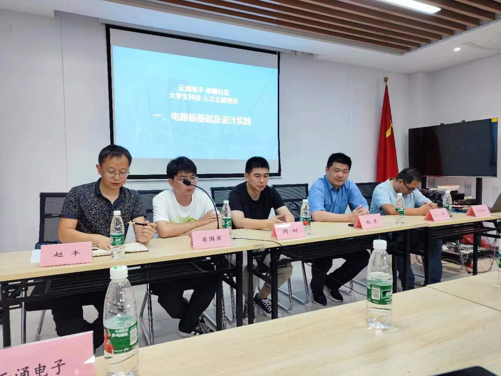 在培訓的第一講中,基于老化采集控制系統,主要圍繞"電路板的基礎設計和調試"展開,包含了電子元器件基礎知識、PCB技術與焊接工藝以及原理圖設計案例等內容。第二講是嵌入式軟件開發及調試的介紹,第三和第四分別是自動化測試管理系統和測試治具等相關內容。參與學習的有來自泰州學院、泰州職業技術學院以及泰順社區的眾多大學生。