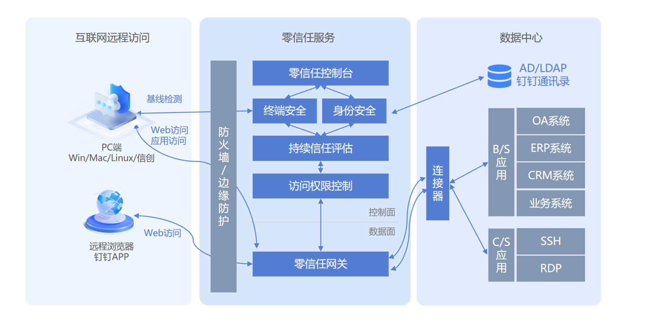 ? ? ? 云涌零信任在企業(yè)傳統(tǒng)的網(wǎng)絡(luò)基礎(chǔ)架構(gòu)之上,構(gòu)建以身份為中心的,貫穿企業(yè)網(wǎng)絡(luò)-應(yīng)用-資源-數(shù)據(jù)全鏈路、一體化的安全網(wǎng)絡(luò)。