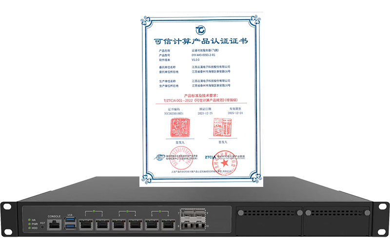 ? ? 云涌科技可信服務器(飛騰) 0YY-449-0093-2-R1以可信計算模塊為可信根,憑借安全、穩定、高效的產品性能,榮獲聯盟和公安部三所聯合發布的第三批《可信計算產品認證證書》,并成為首批上架聯盟官網的產品之一。