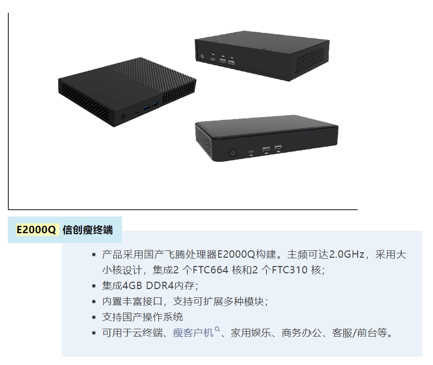 此外,云涌科技還帶來了基于 E2000Q 構建的信創瘦終端和網安硬件平臺,以及可信根、加密卡、可信服務器等系列產品,同樣在現場備受矚目。
