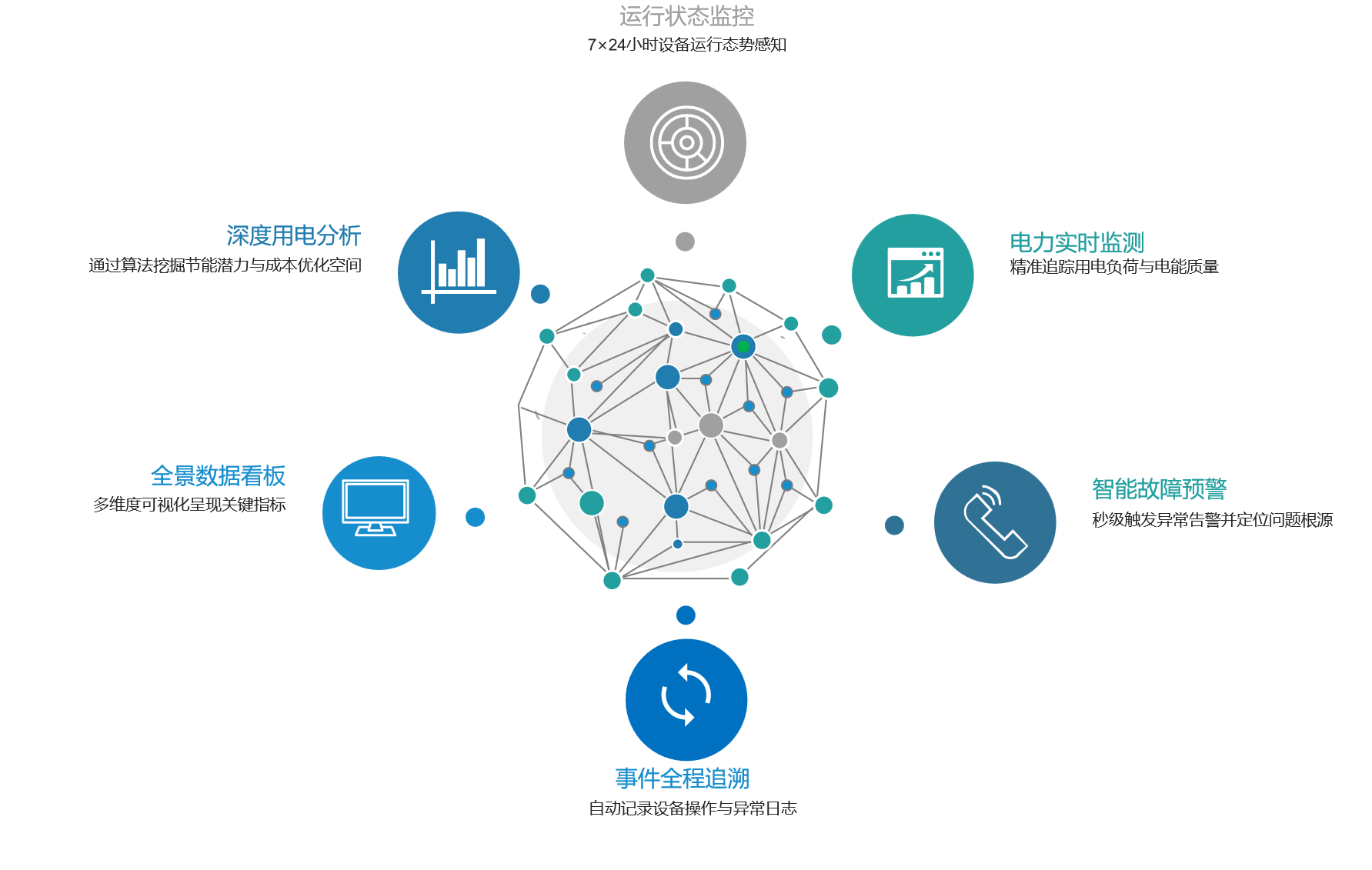 - 智慧能效管理——提供“綜合能源管理云平臺”,實現(xiàn)電能數(shù)據(jù)的自動化采集與可視化,支持用能效率的精準分析、節(jié)能潛力的深度挖掘及電能質(zhì)量的全面診斷,助力精細化能源管理。