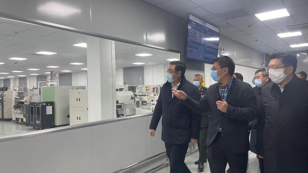 ? ? ? 為深入貫徹落實泰州市第六次黨代會精神,堅持全市上下“大抓項目、抓大項目”的政策,扎實推進太陽城、信息城、科創城“三城同創”,高質量推進“三大門”建設,全力推進“八老十難”攻堅行動,泰州市舉行了“三比一提升”項目建設現場觀摩活動。12月29日,市委書記朱立凡、市委副書記湯成快,分別帶領項目觀摩A組、B組人員蒞臨江蘇云涌電子科技股份有限公司,考察工業信息安全產品智能制造車間,云涌科技總經理高南親自陪同參觀,并進行了講解。