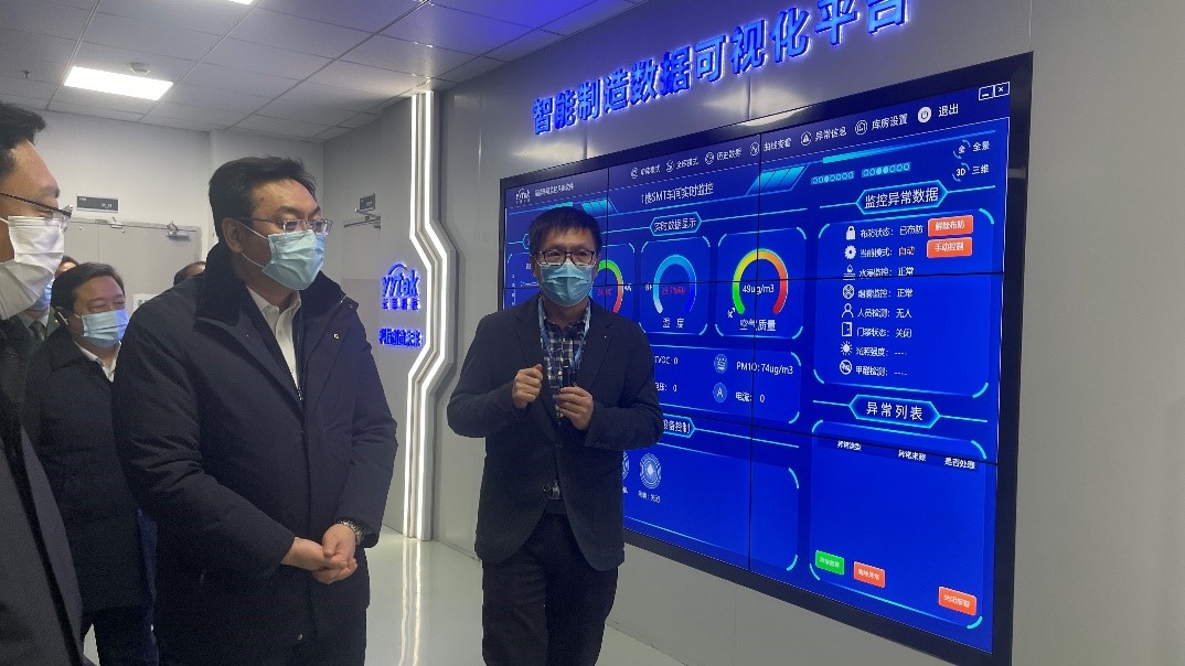 ? ? ? 隨后,朱書記等一行領導走進我司智能制造車間進行考察,高總重點介紹了公司SMT智能化生產線、“5G+AGV”搬運機器人場景應用等智能車間運行的情況。朱書記對公司的發展以及制造中心的智能化水平給予了充分的肯定,并鼓勵公司借力資本市場,繼續推進科技創新,實現產品的高價值、高顏值、高效率,促進云涌科技高質量發展。