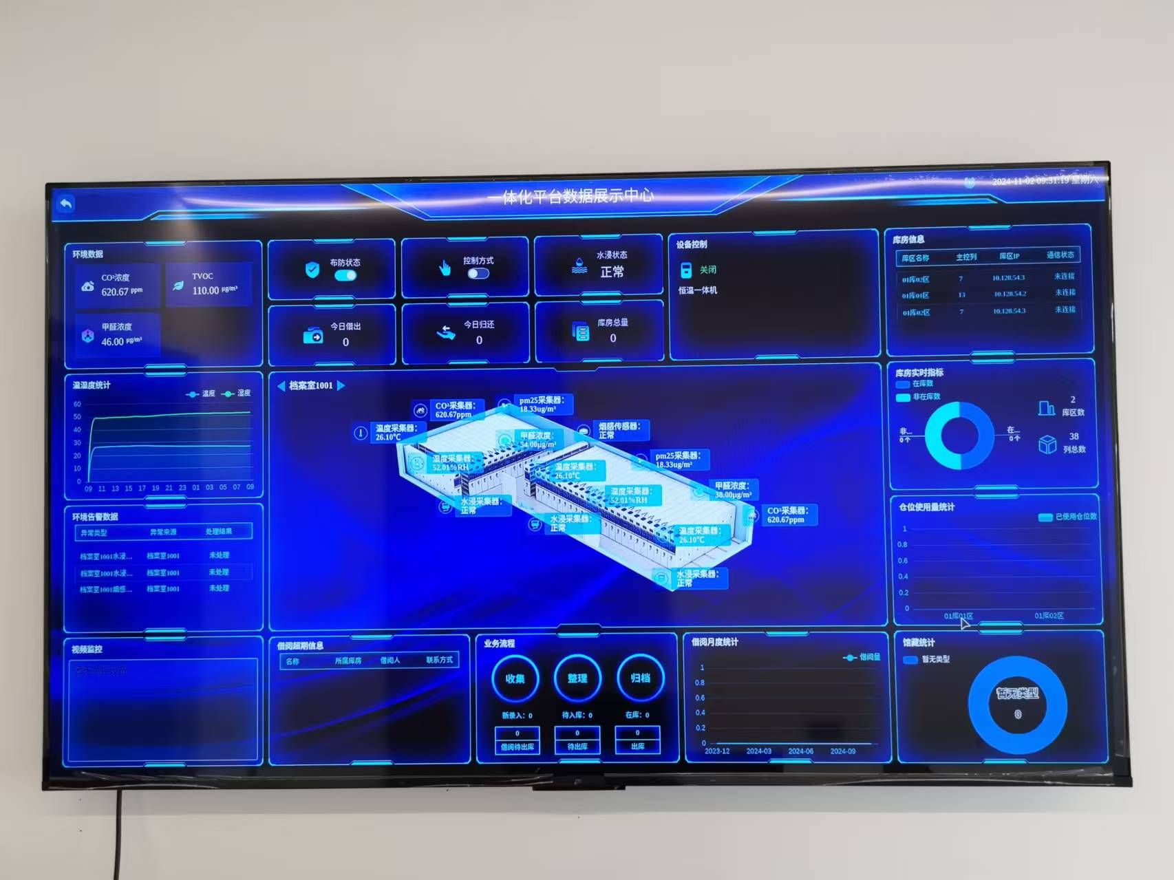 通過液晶顯示大屏來展示環境數據信息、檔案位置的引導信息、設備報警信息等。