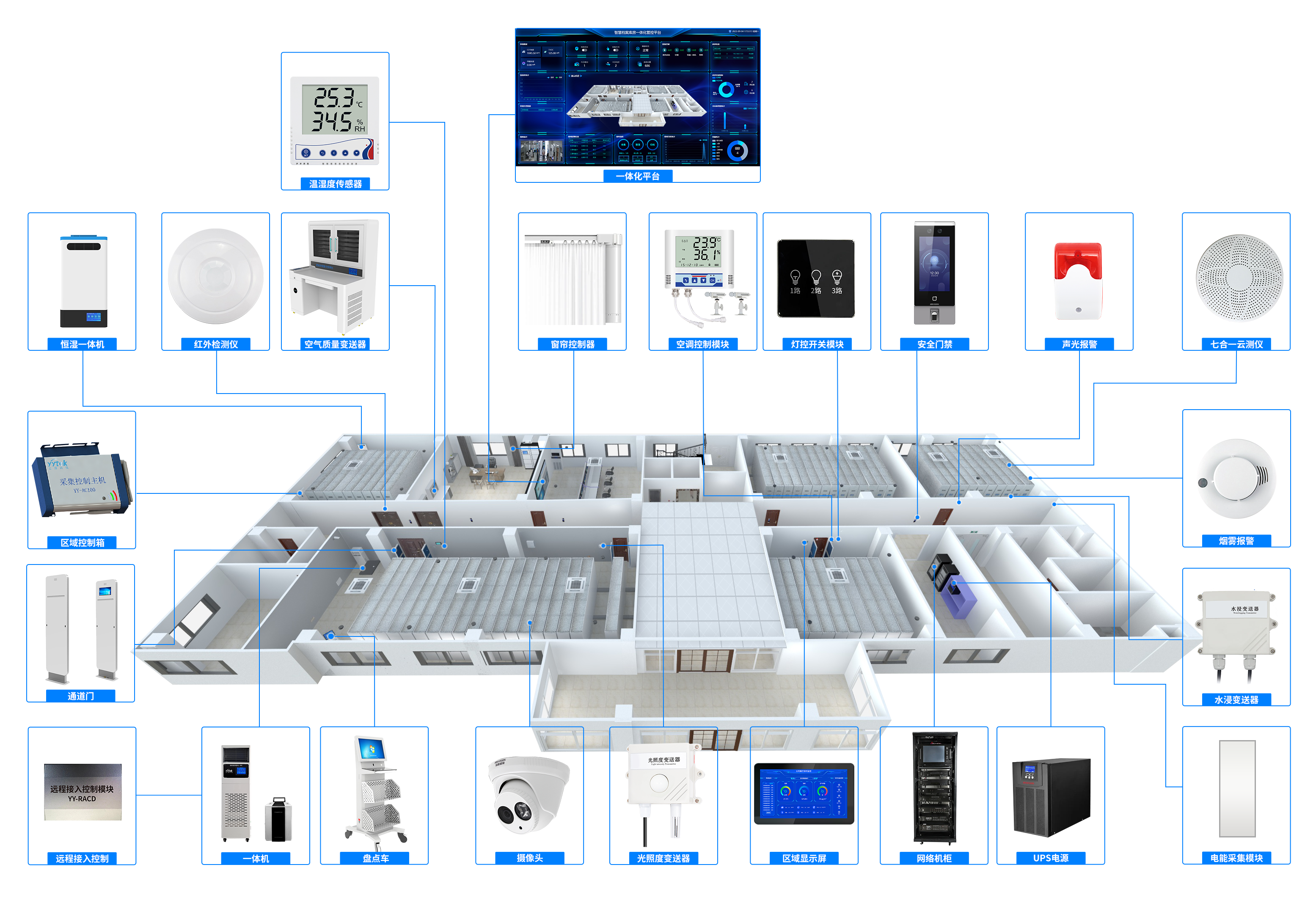 通過一套系統實現庫房內實體檔案管理設備、檔案存儲設備、檔案庫房環境監控設備、檔案庫房安全防范設備等的統一管理。